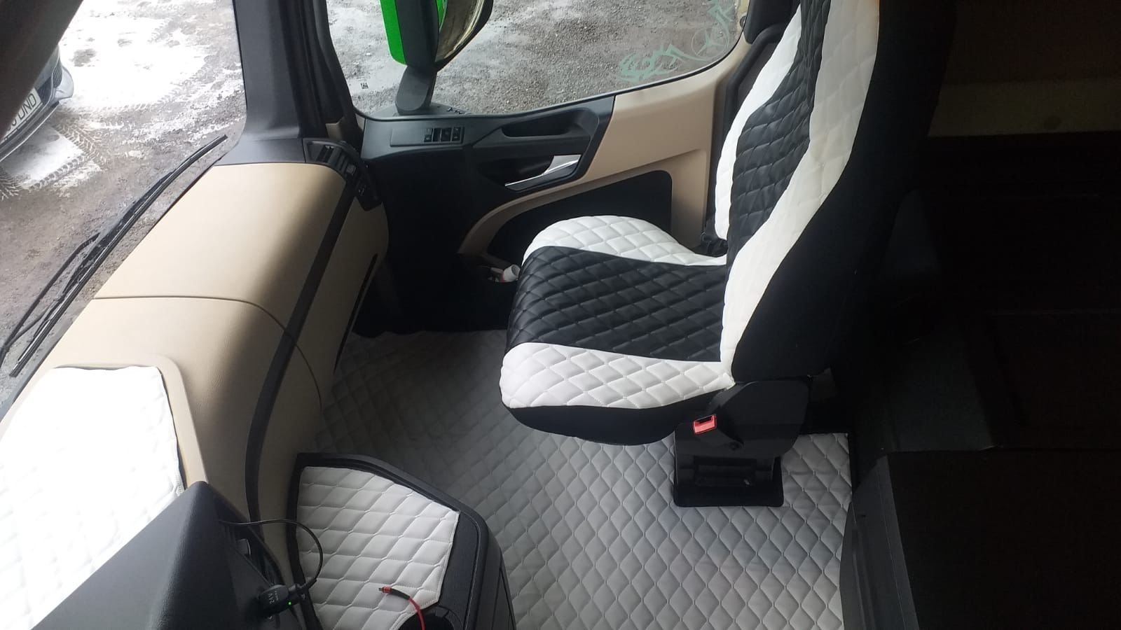 Redonnez du style à votre cabine avec nos housses en éco cuir haute performance. Ces accessoires premium sont conçus pour allier robustesse et élégance, offrant à votre camion une touche unique de sophistication.